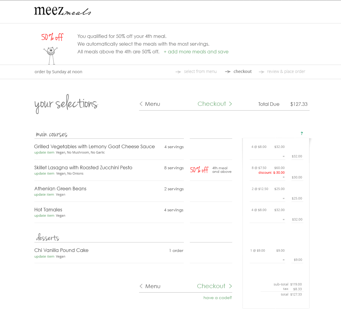 The menu and checkout are feature rich, but intuitive, easy, and fun. A lot of time went into creating a presentation that felt informal and natural.